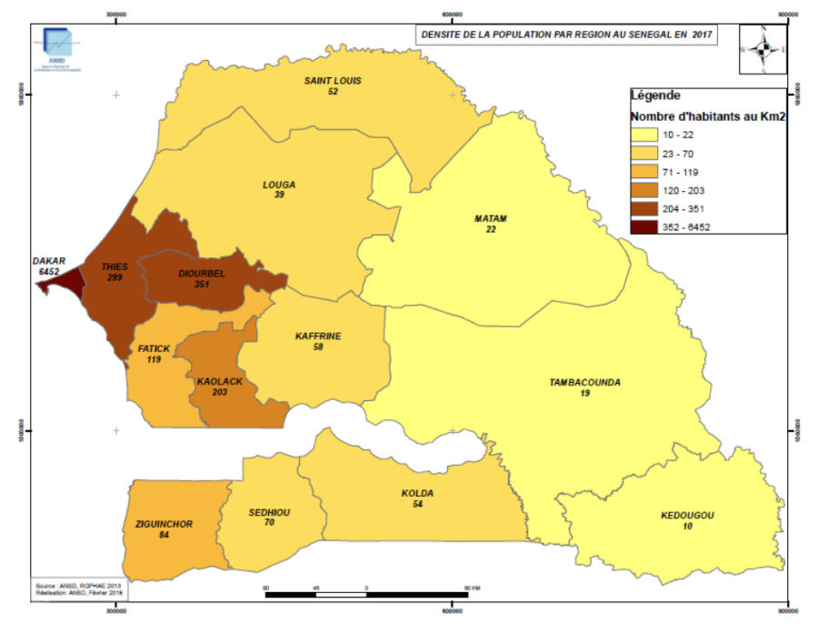 Le Sénégal a une superficie totale de 196 700 km2 et une population estimée à 16 millions d’habitants en 2019.